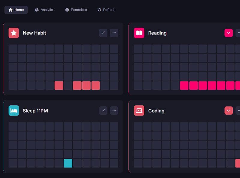 • Dynamic Habit Tracking: Effortlessly add new habits, and mark your completions on a clean, visual grid. Watch your progress grow day by day and build powerful momentum.